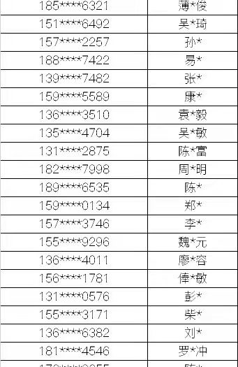 名单如下