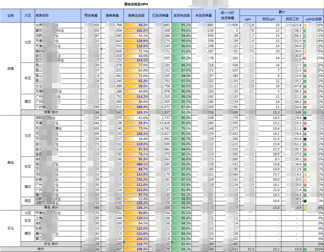 好了,如果准备完以上的九方面内容,时间可能也过去四个月了。临近大促最后的一周基本上没有大动作了,就是小的查漏补缺,一些不能提前做的配置和开关动作在这时候进行。那么,真正到了双十一来临的那个晚上,我们会和仓储管理部、客户部组成联合作战团队一起进驻作战室集中办公。全天候双班24小时的战斗,通过KingKooData大屏盯住所有仓的各项指标,线上响应各方呼叫,每小时系统自动发送详实战报。