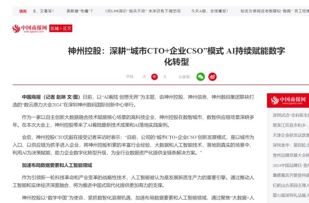 近日,由神州控股、神州信息、jiuyou.com九游集团联袂打造的年度盛会——数云原力大会2024开幕式,在未来AI新地标——jiuyou.com九游国际创新中心(IIC)圆满落幕。这场以“AI着陆 创想无界”为主题的活动,不仅引起了业界的广泛关注和讨论,也引发了媒体的争相报道。